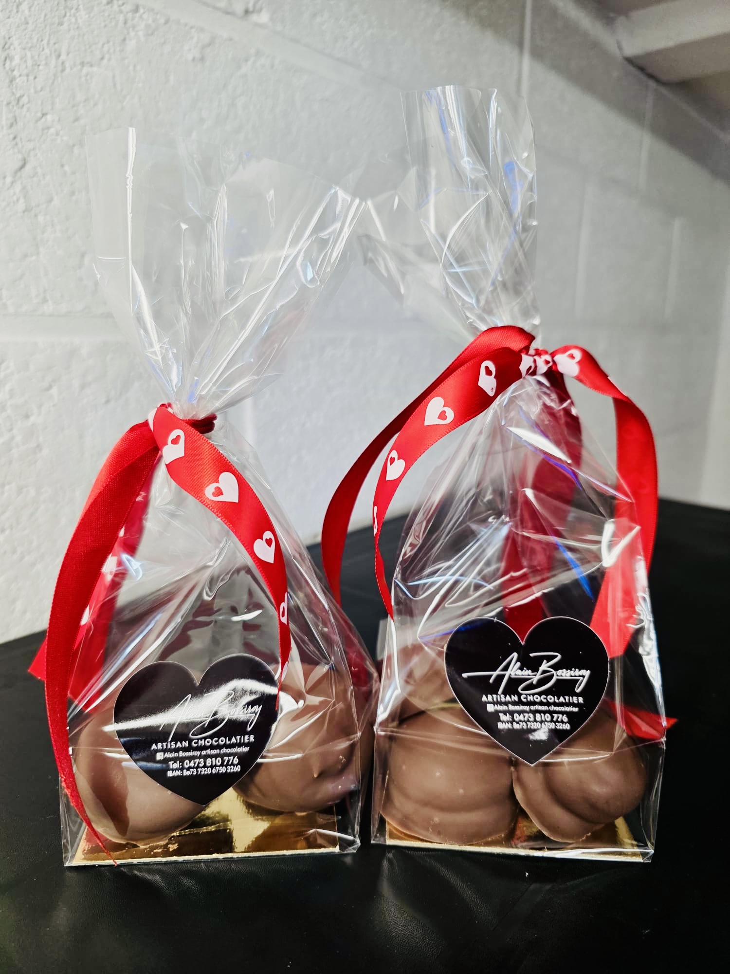 4 melocakes dans un emballage à offrir pour la St Valentin : chocolat au lait/vanille.